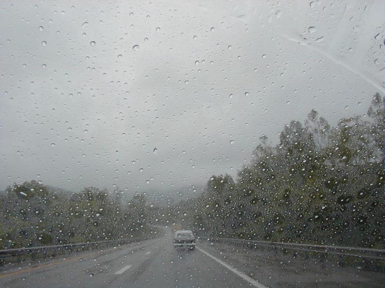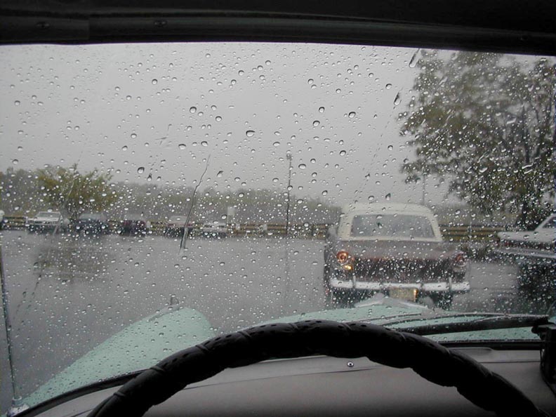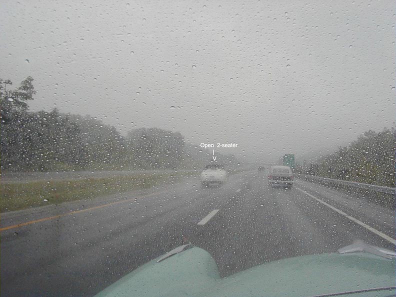 Notice here, a Custom, open 2-seater passes us in the rain This was the 2nd time they did this, apparently stopping to dry off somewhere in between. |