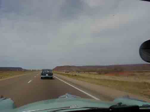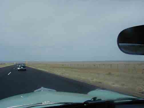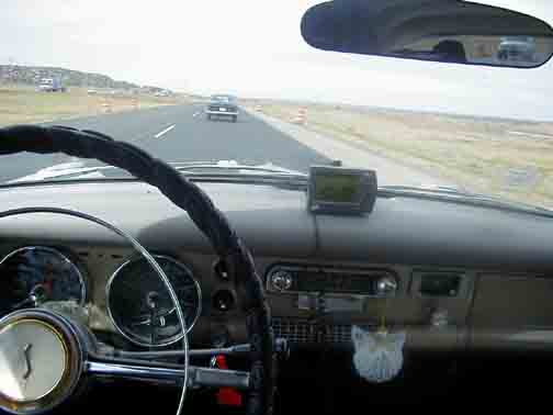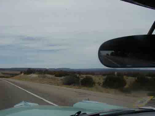 While approaching Albuquerque, on the Interstate, I spied something familiar. Off to the right was a 55 President Sedan, same color as mine, resting awkwardly on a flat tire, in the yardfront of a local. This will be the catalyst for an interesting meeting on the eastbound trip, a couple weeks hence. |