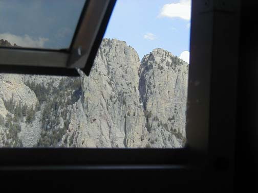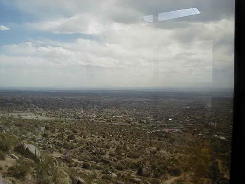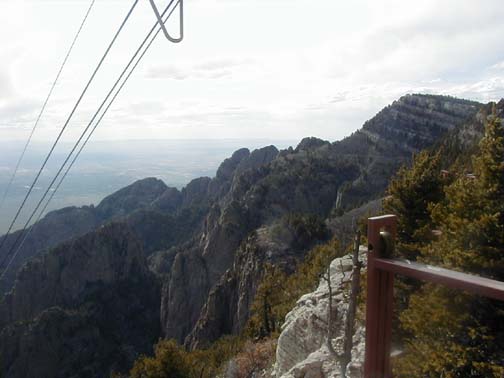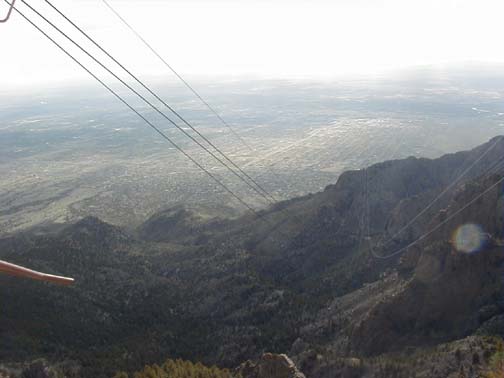 | The plans for that evening were, that we all were to go to Sandia Peak, take the tram to the summit ( 10,000 feet) and have dinner at the High Finance resturant Paul stayed behind, to work on the car. |