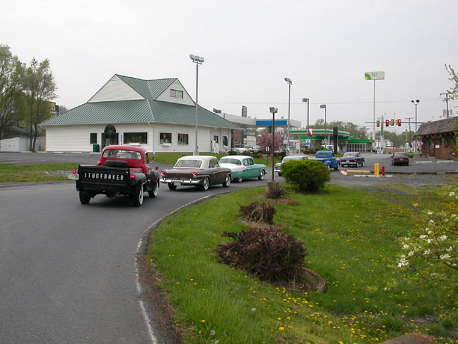 This adventure was conceived at a Potomac Chapter Meeting in March 2000, while at the York swapmeet. Members, Dave and Nadine Farris, Marty Long and Pat and Larry Merhaut, during idle conversation, hit upon driving the Mother Road, all the way to Santa Monica, CA, in our Studebakers. Marty later cancelled (a sane man), but five others signed on. Our wagonmasters were Dave and Nadine Farris. Incredibly, on April 21, 2003, we found ourselves gathered in the parking lot of the Johnny Appleseed Restaurant in New Market, VA, destined for an adventure far beyond anything we could have imagined. The caravan, with a sixth couple joining us, consisted of Dave & Nadine Farris (1959 Lark HT), Donna and Bob Johnstone ( 1955 President Sedan), Paul & Karen Johnson (1964 Avanti R2), Frank & Faye Fuller (1960 Lark HT), Norris & Gael Edmonds (1957 Transtar pickup), Paul & Dorothy Thrush (1954 2R Pickup), and finally Pat & Larry Merhaut ( 1962 Lark Convertible) (Excerpt-"From Here to Eternity-The Route 66 Odyssey-2003", Larry Merhaut)