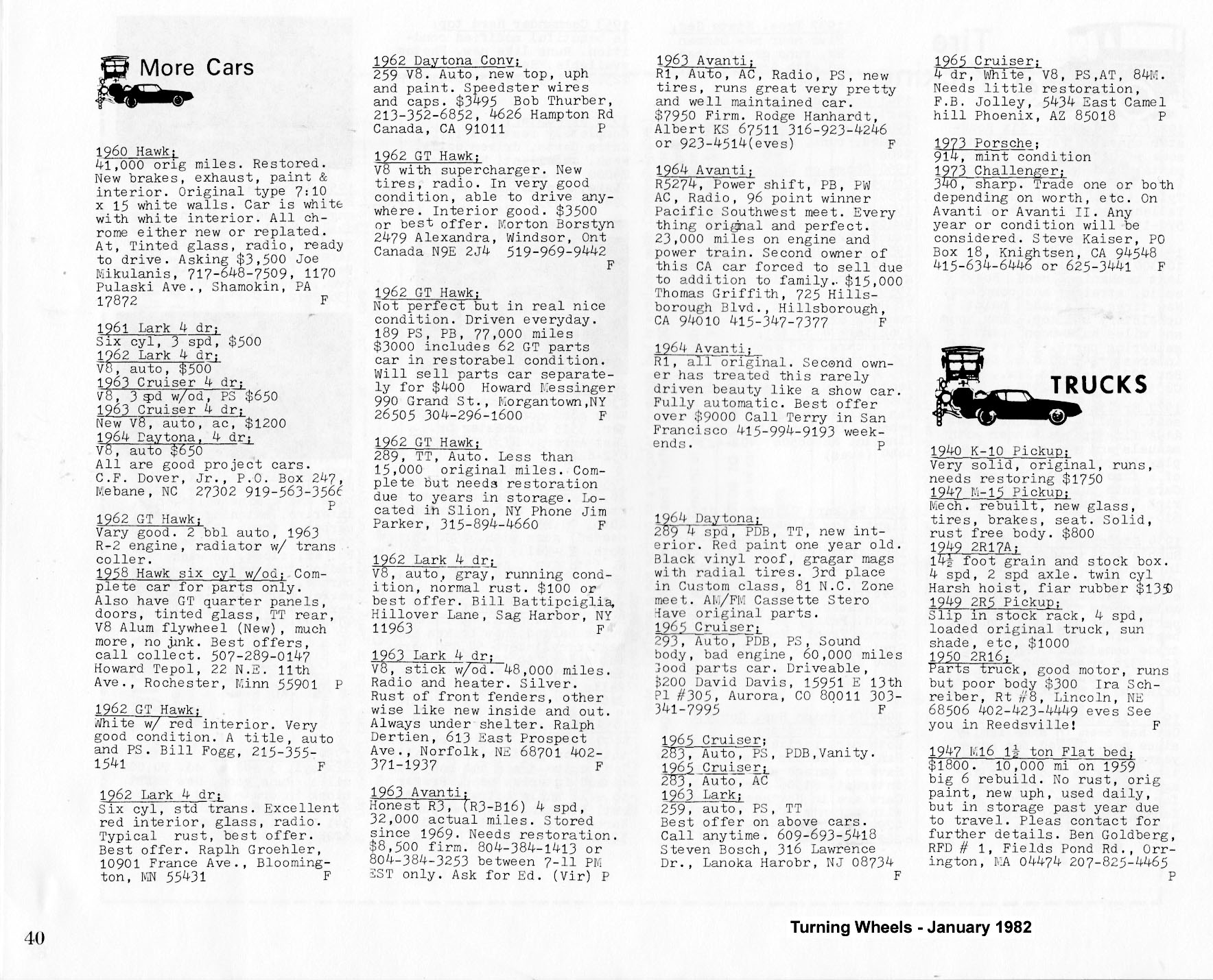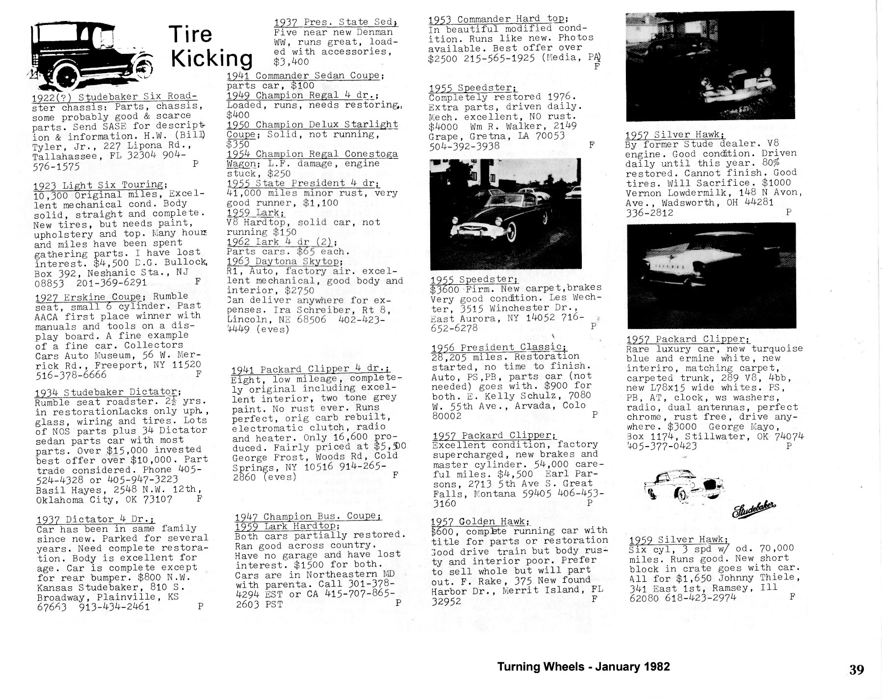 Bob's Studebaker Resource Website Classifieds Turning Wheels, January 1982