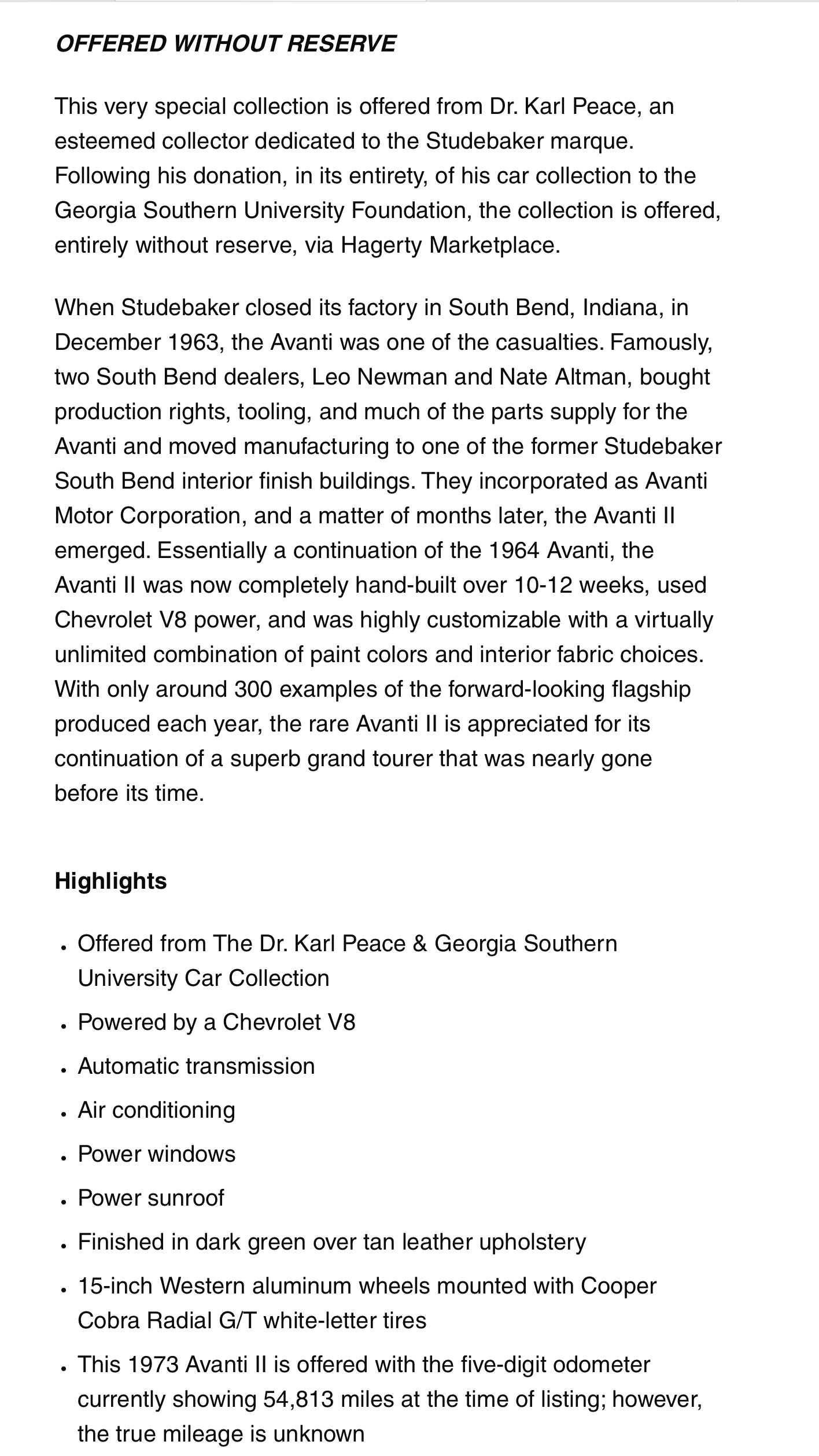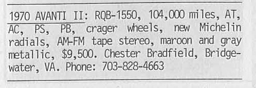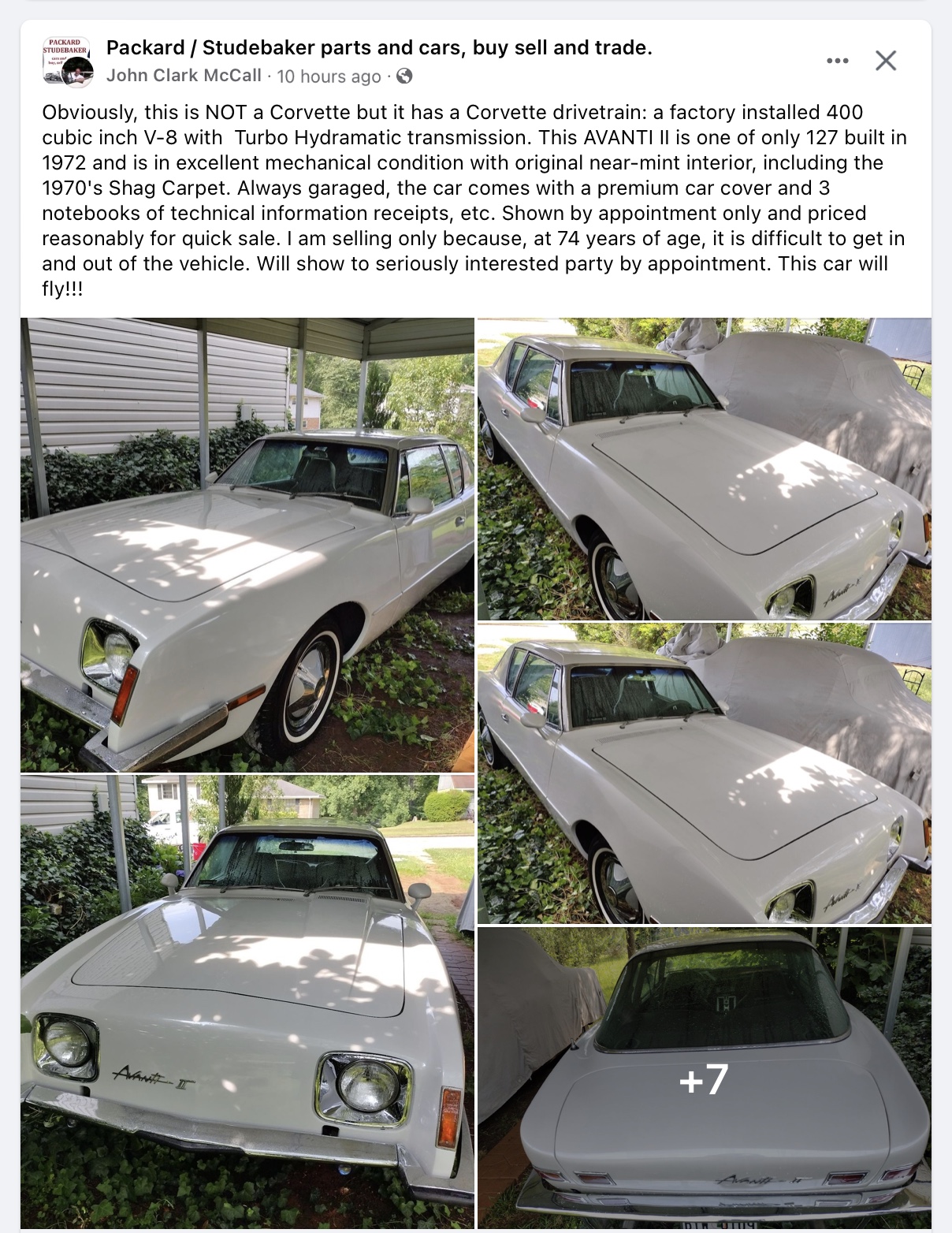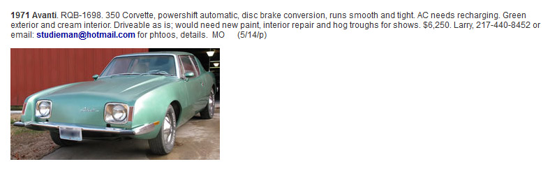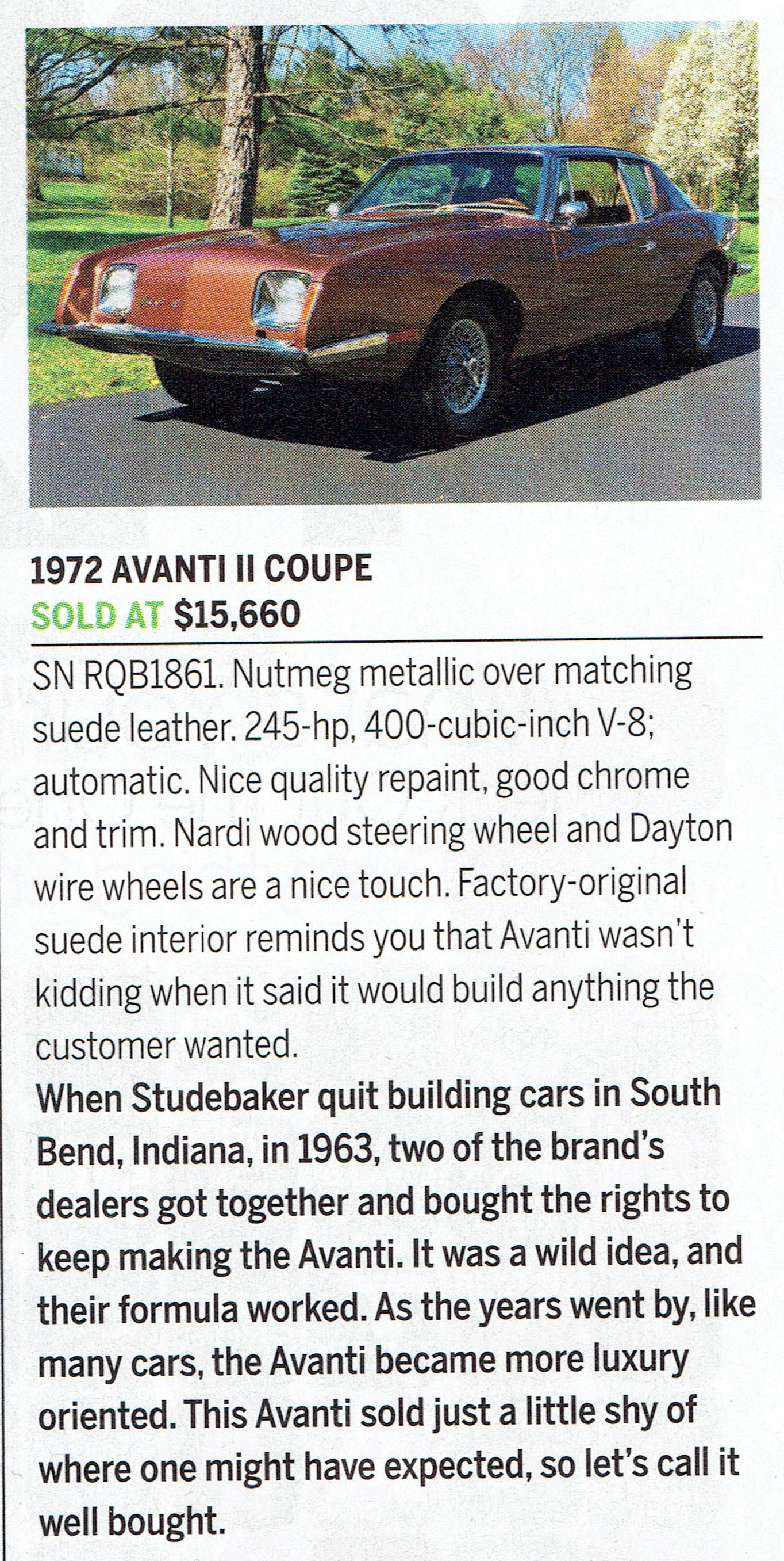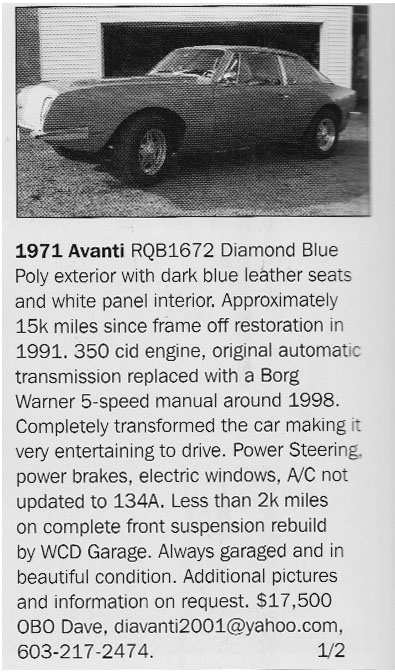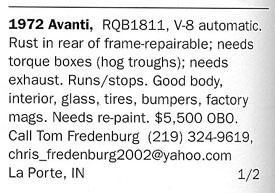 NO IDEA whatever became of it. It has NO SPECIAL DESIGNATION -- so you 1974-77 Avanti II owners, grab your tape measures!")