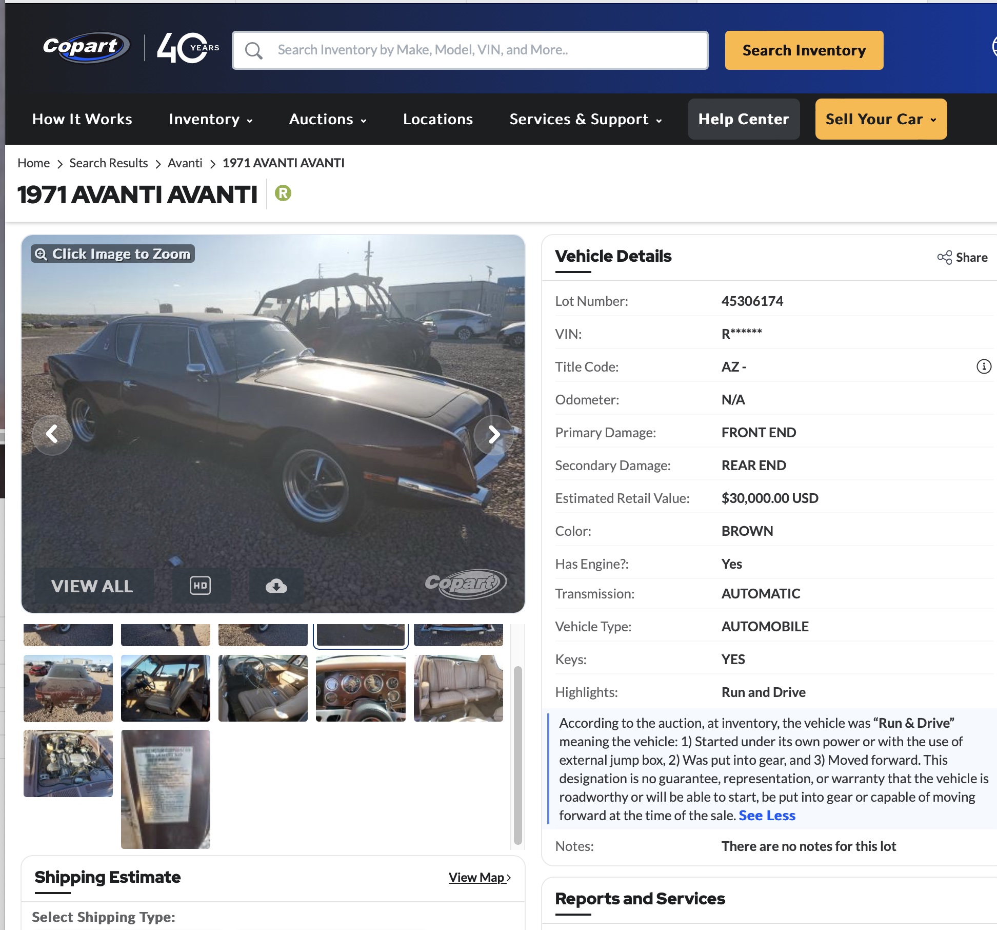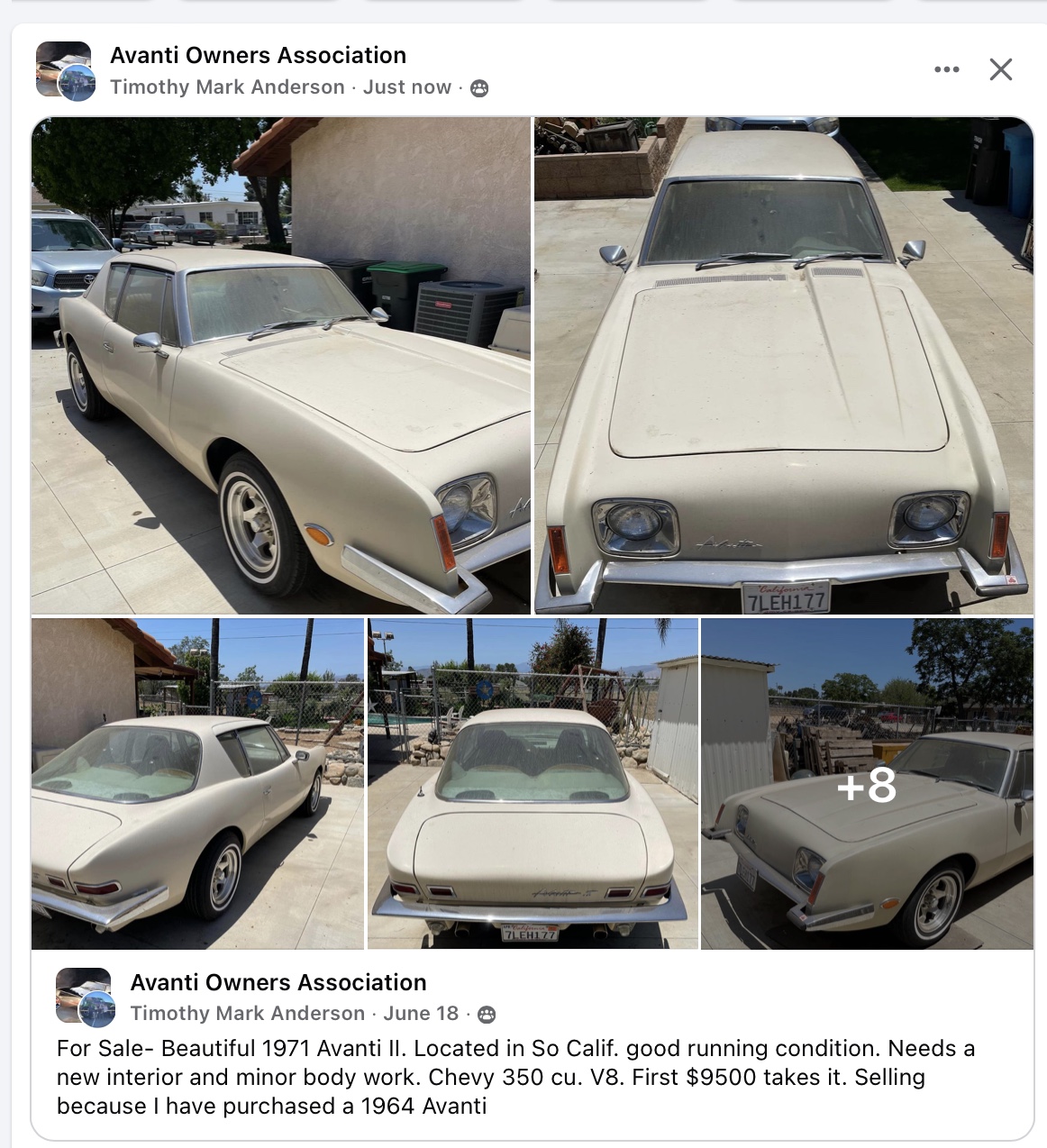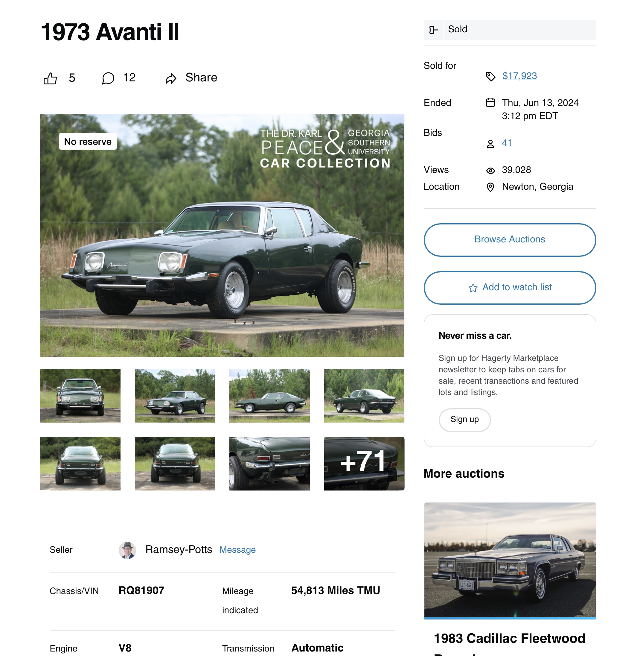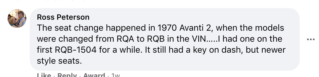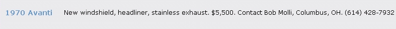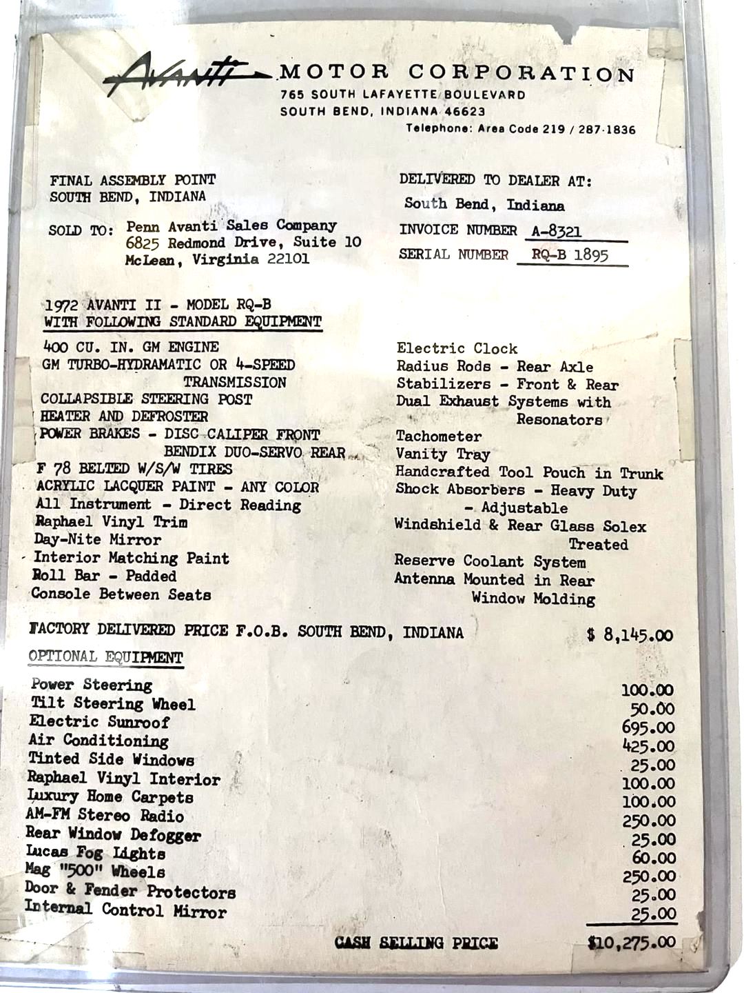 NO IDEA whatever became of it. It has NO SPECIAL DESIGNATION -- so you 1974-77 Avanti II owners, grab your tape measures!")