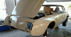 With the depletion of stocks of original frames, it was reported that 6 cylinder Lark frames were being used in the current manufacture. These were lighter duty frames, but were modified and strengthened to required specifications. Closing in on 1983, it was evident that a chassis renovation was required to continue producton. The choice of the renaissance, was the GM Monte Carlo/El Camino chassis. / Discussion