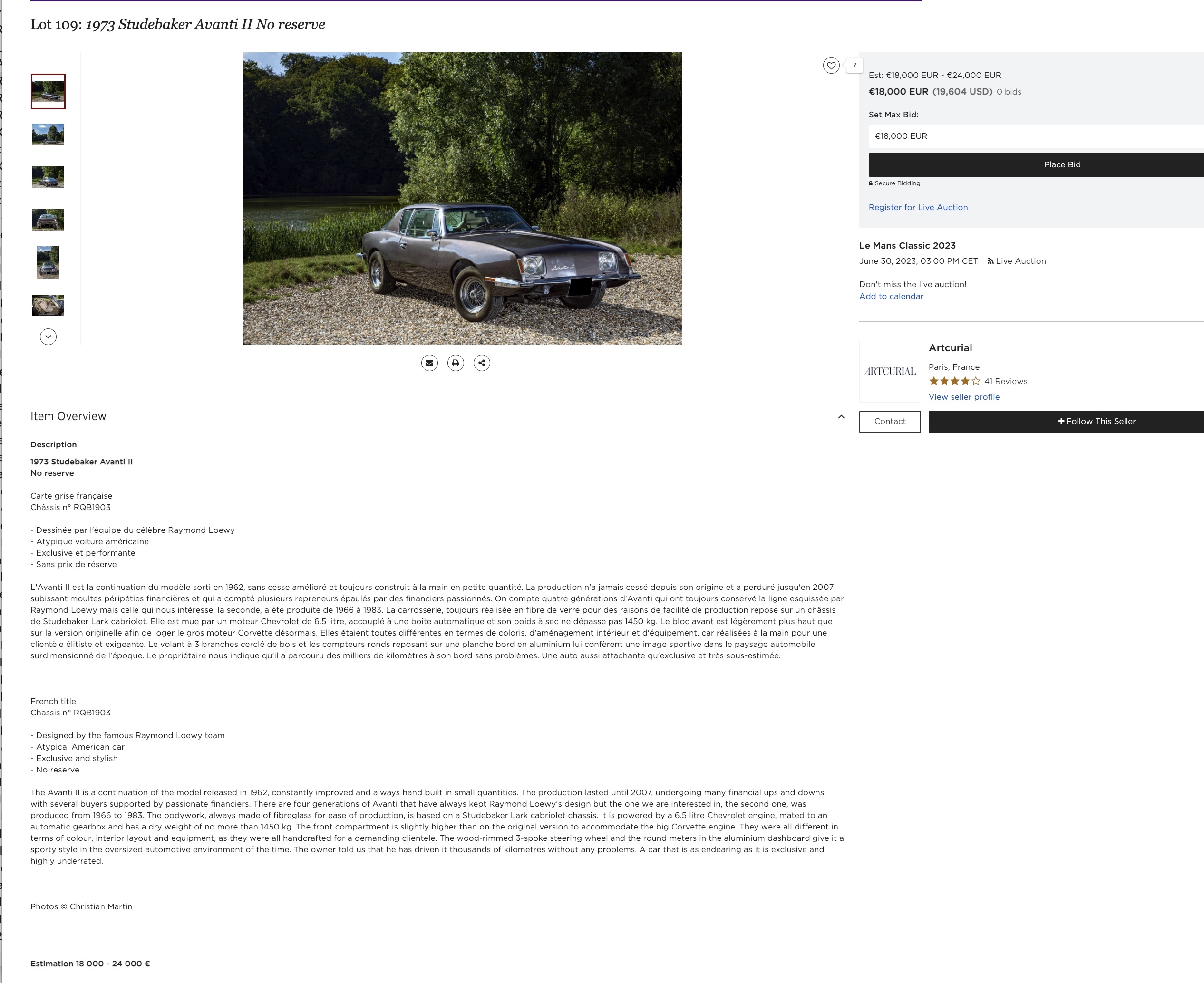 Raymond Loewy's Avanti II ![]() RQB-1829 - Thierry Grosjean, Paris,France