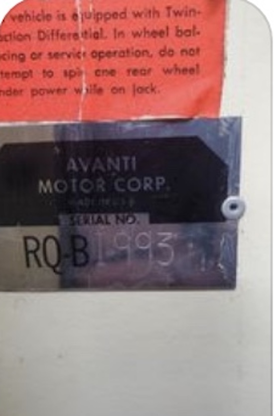 Reported to be first Production Avanti II that ceased using the original Studebaker Body Tags Ref . ( 08082017)