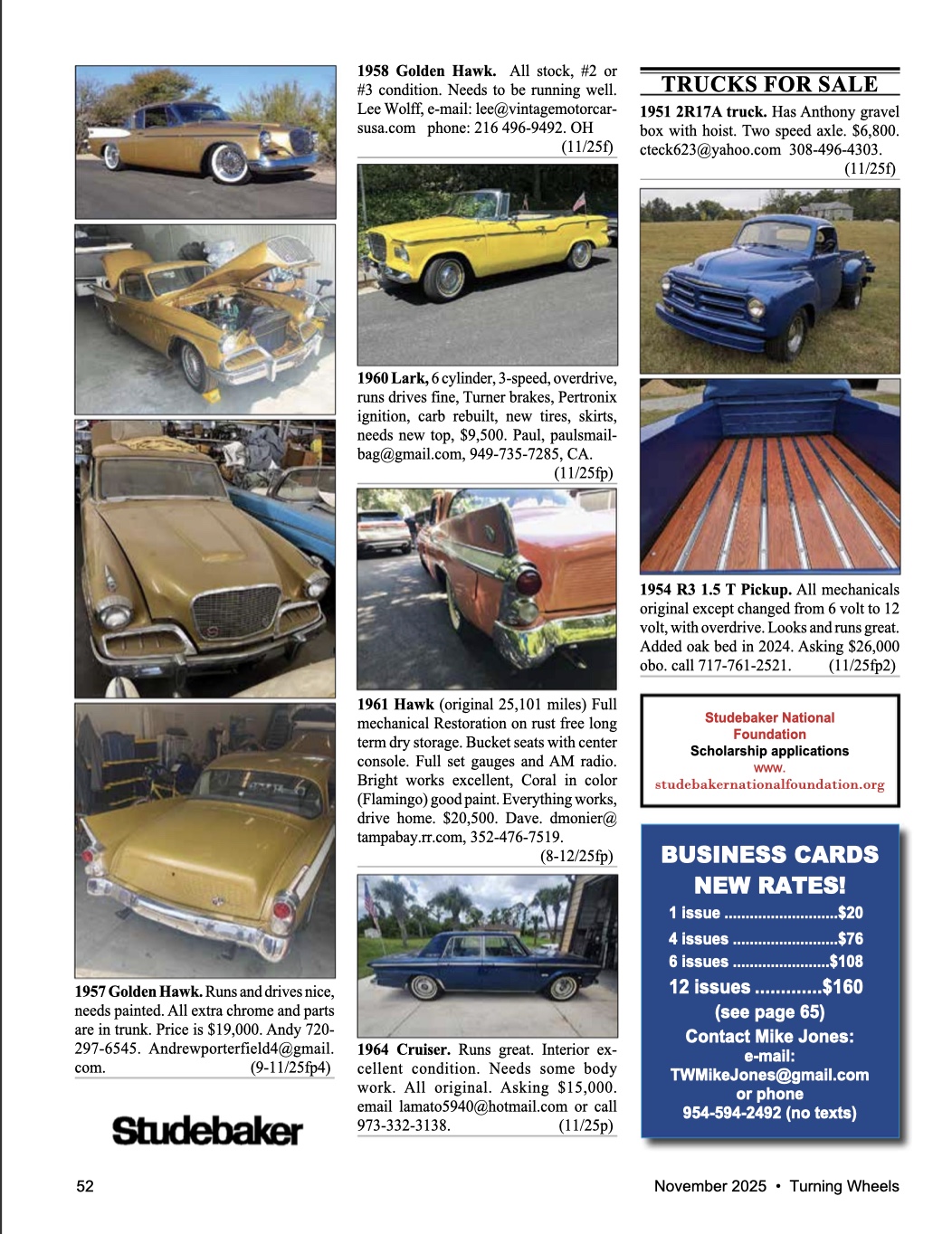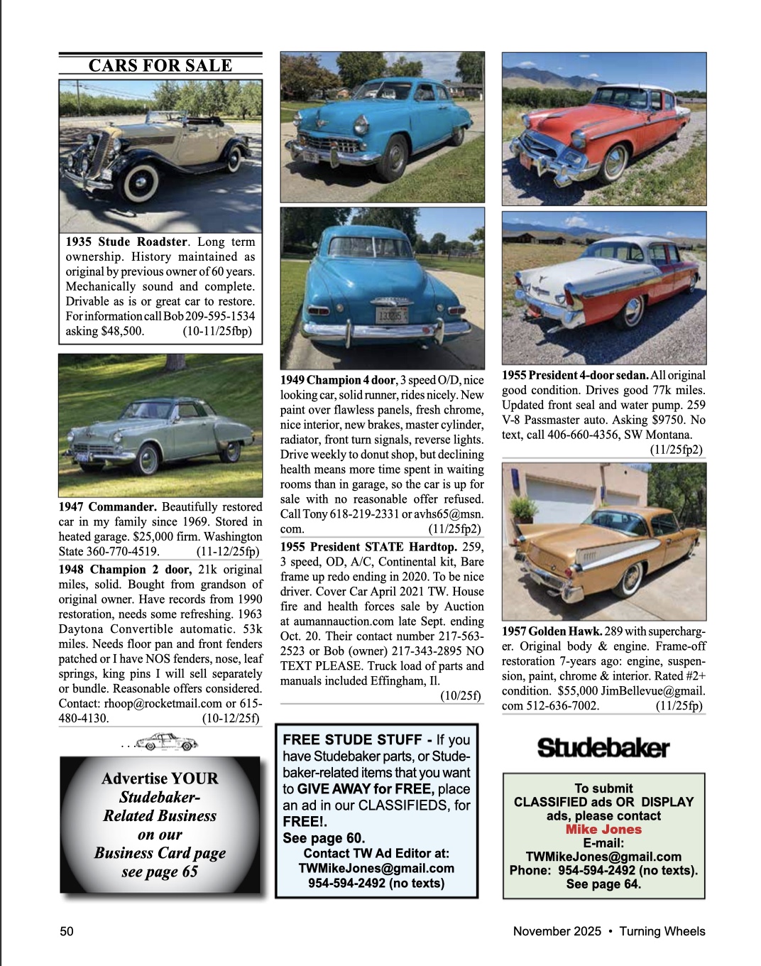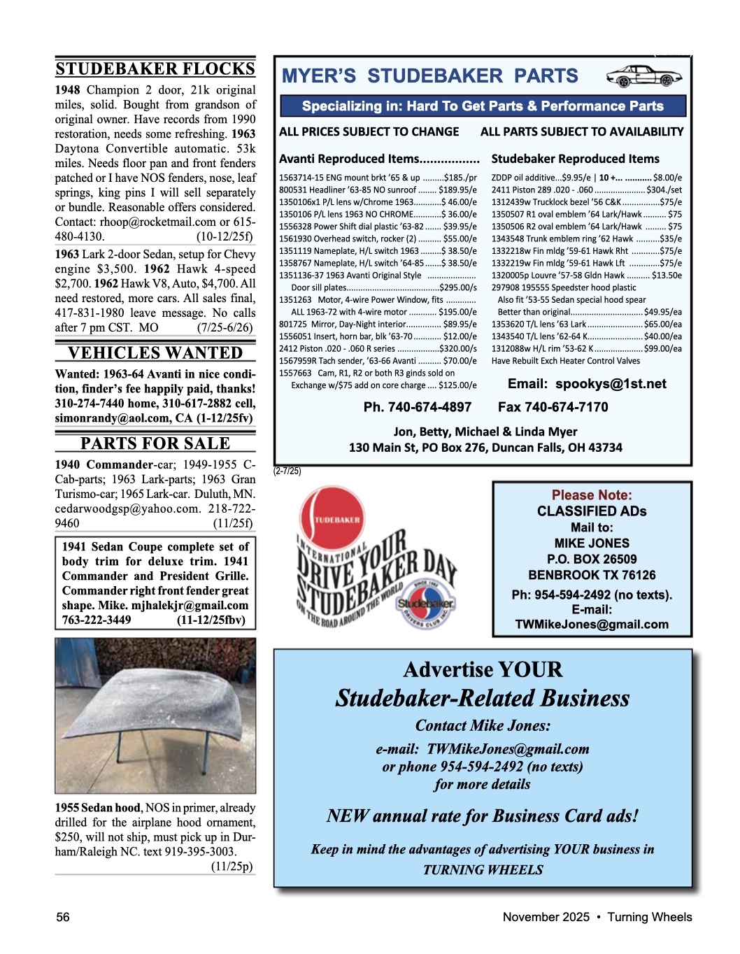 Turning Wheels Business Cards Studebaker Links SDC Tech Tips