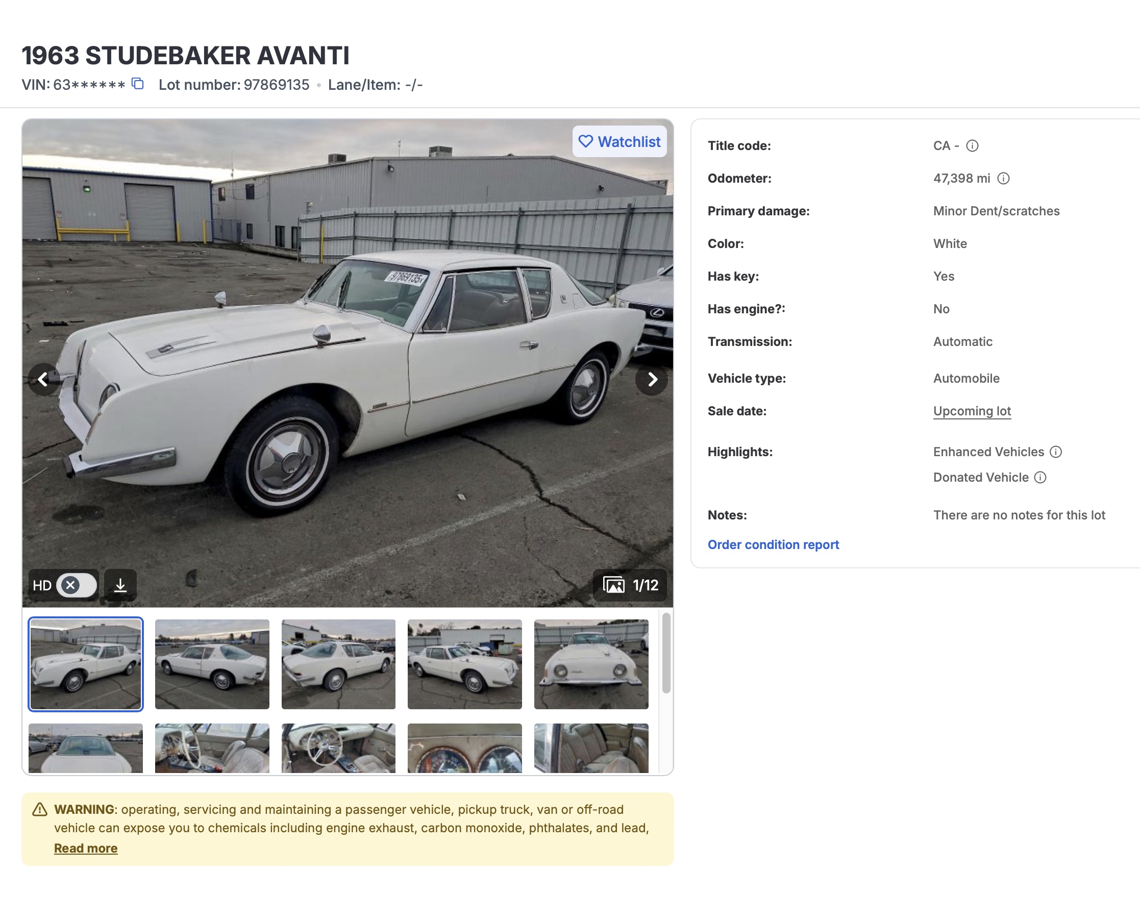 1963 Avanti R-nnnn - Body 63RQ-1535 - Jan 2026