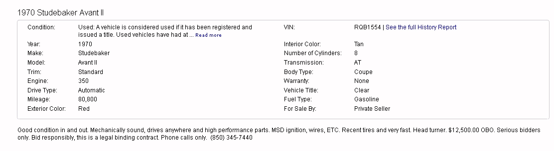 Bob's Studebaker Resource Website 1970 RQB-1554 Sep 2012