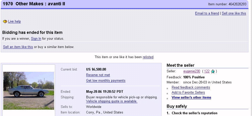 Bob's Studebaker Resource Website 1970 RQB-1574 - June 2006 Listing