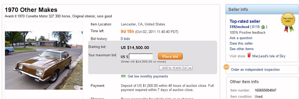Bob's Studebaker Resource Website 1970 Avanti RQB-1588