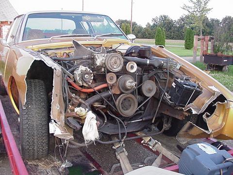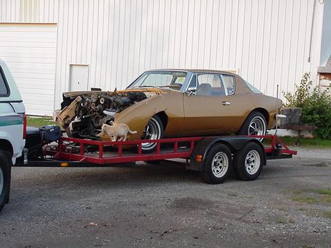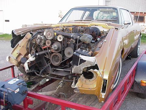 This '71 Avanti II was hit pretty hard in front, from the side. Apparently, the guy stuck its nose out where it did not belong and basically got everything forward of the tires cleaned off. It also needed interior, frame straightening, some frame rust repair, hog troughs, and the list goes on. Many parts from this car went to help others in need for their projects and so, in a way, it lives on.