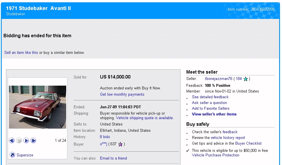 1971 Avanti II - RQB 1645 - June 2009 Listing