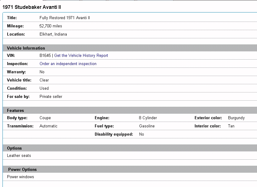 Bob's Studebaker Resource Website 1971 Avanti II - RQB 1645 - June 2009 Listing