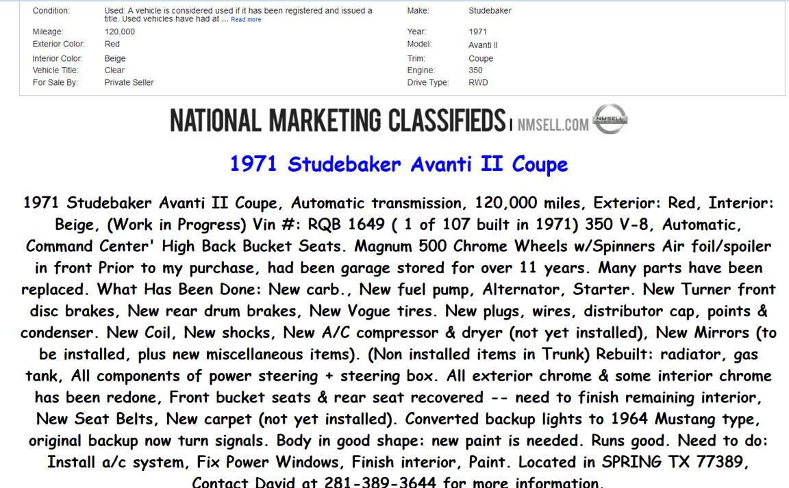 Bob's Studebaker Resource Website 1971 RQB-1649 May 2014
