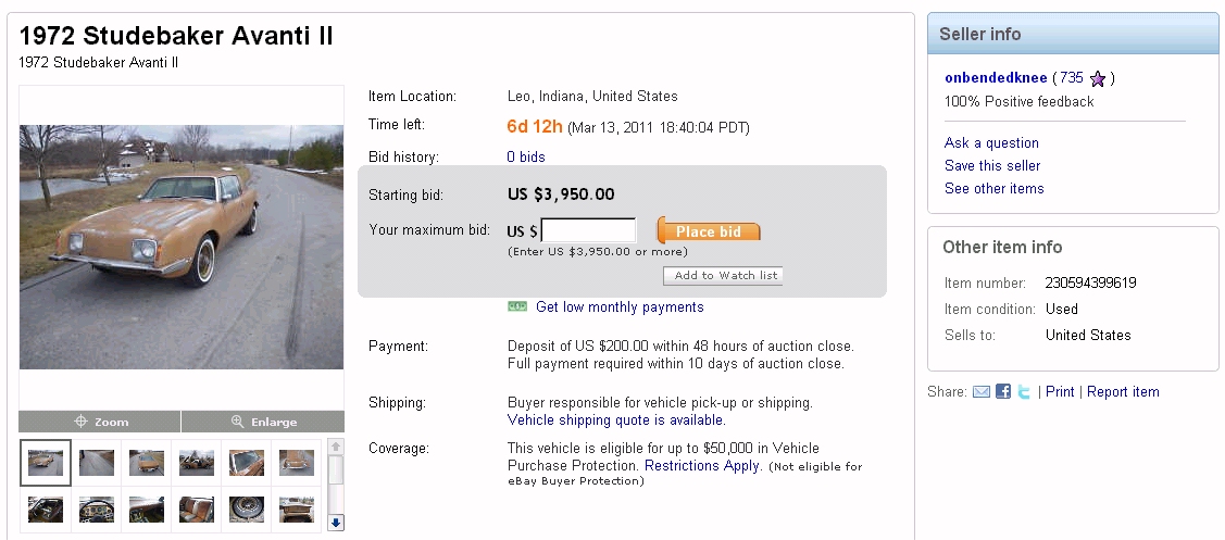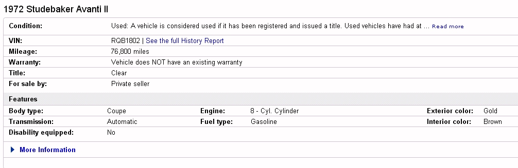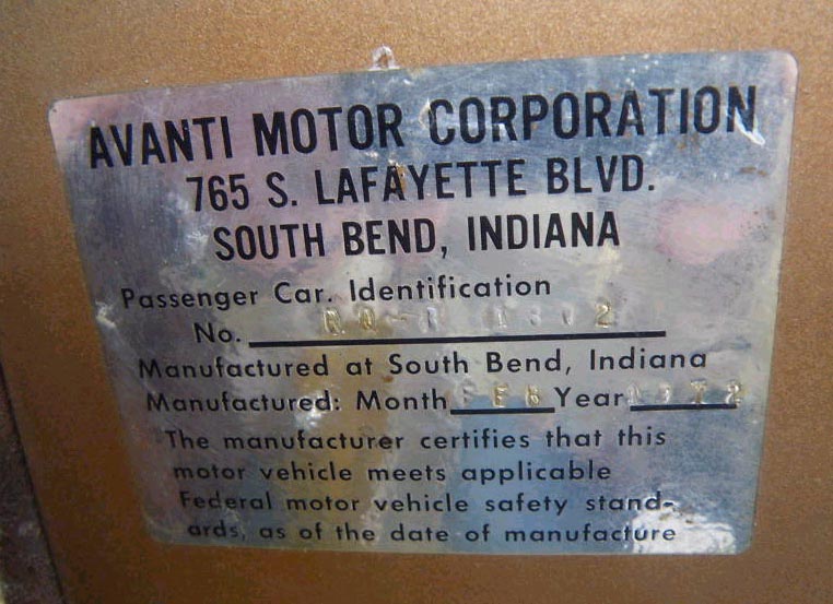 Bob's Studebaker Resource Website 1972 Avanti RQB-1802