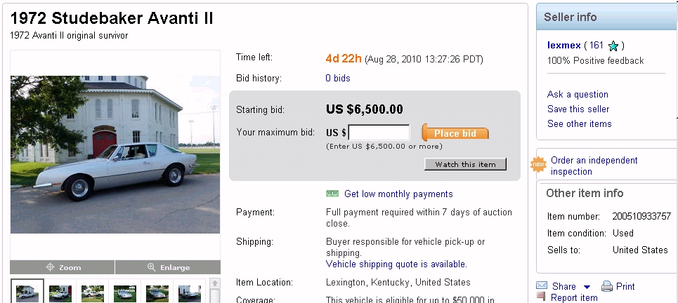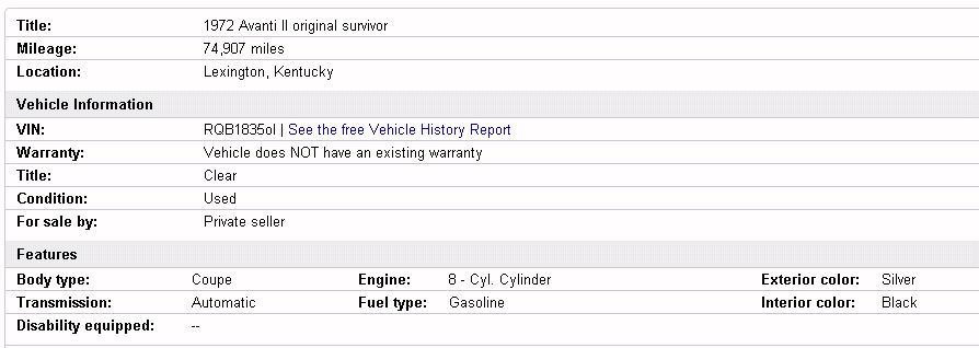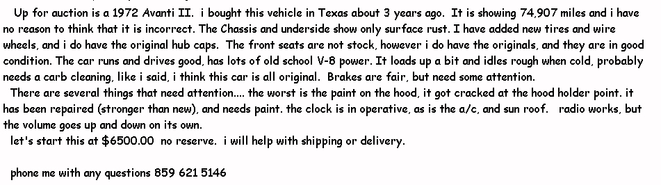 Bob's Studebaker Resource Website 1972 Avanti RQB-1835 - Aug 2010