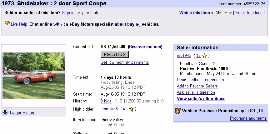 1973 Avanti II, In need of total restoration. Motor runs, Transmission leaks fluid, Hog