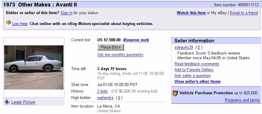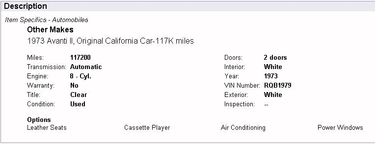 Bob's Studebaker Resource Website 1973 Avanti RQB-1979 Ebay Ad