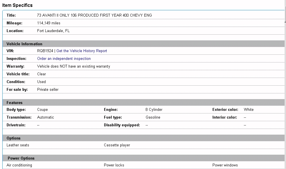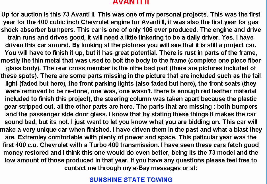 Bob's Studebaker Resource Website 1973 Avanti II RQB-1924 August 2008 xxxxx