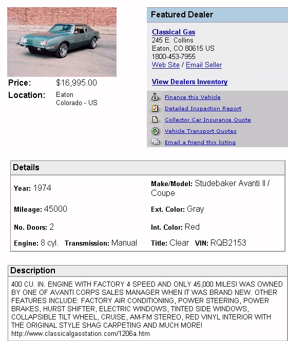 Bob's Studebaker Resource Website 1974 Avanti II RQB-2153 February 2005