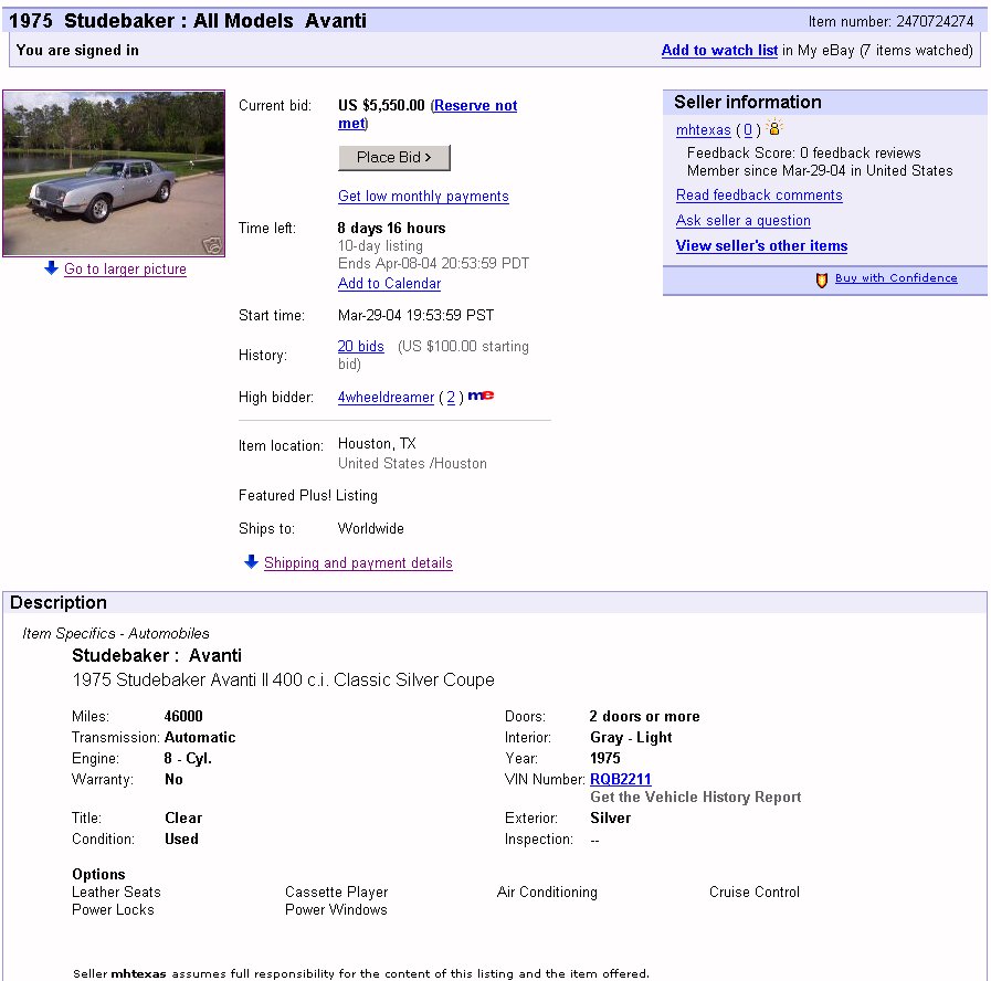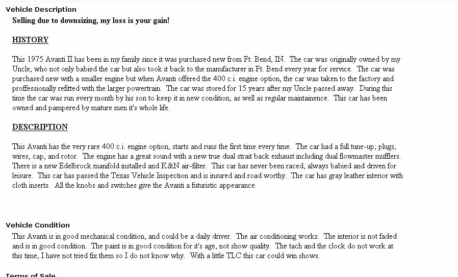 Bob's Studebaker Resource Website 1975 Avanti II RQB-2211 March 2004