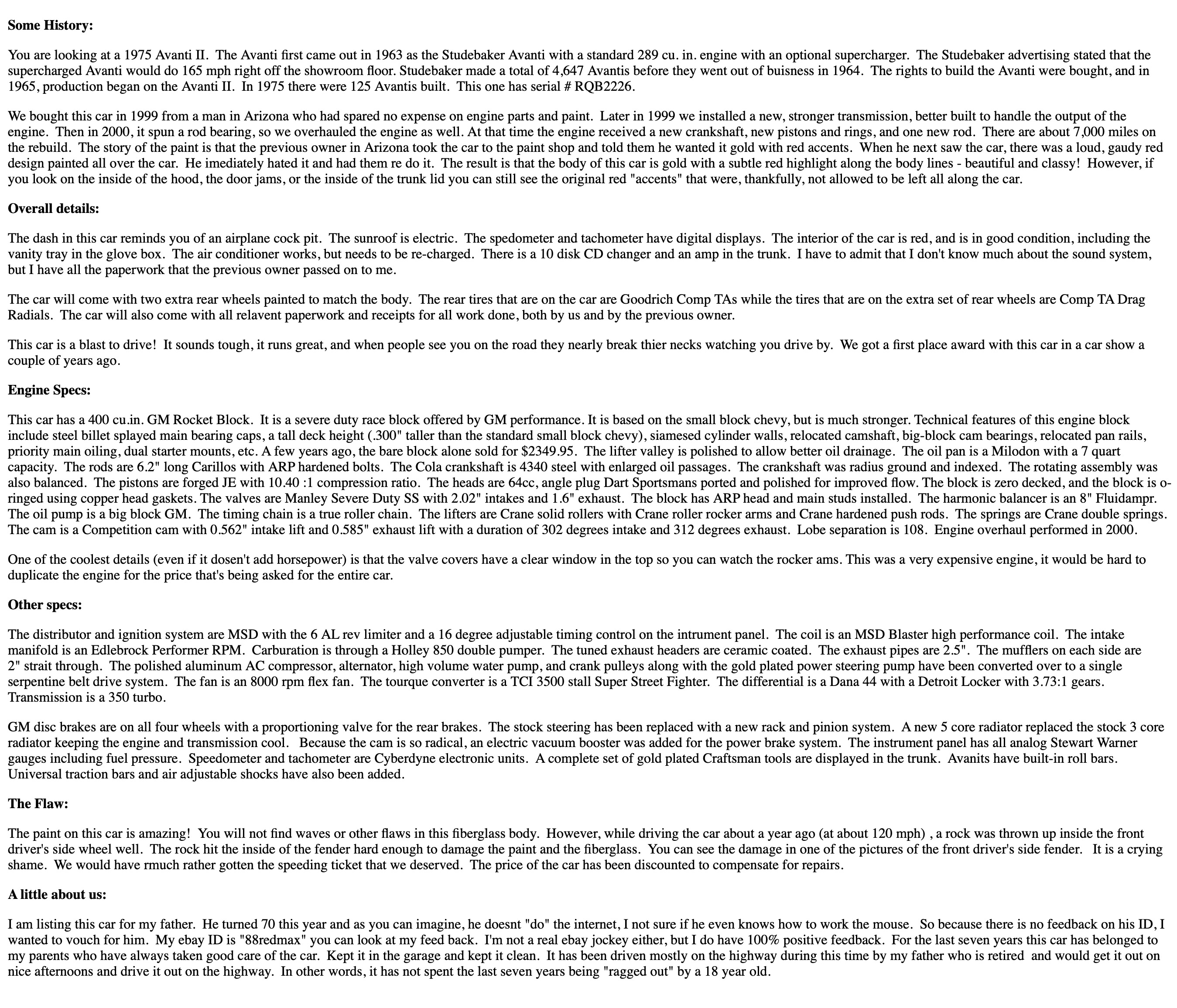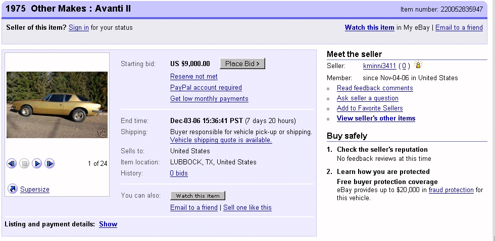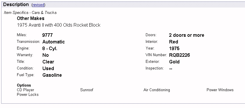 1975 Avanti II RQB-2226 Ebay Ad - Feb 2007