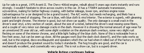 Bob's Studebaker Resource Website 1975 Avanti II RQB-2295 Classiccars.com - June 2010