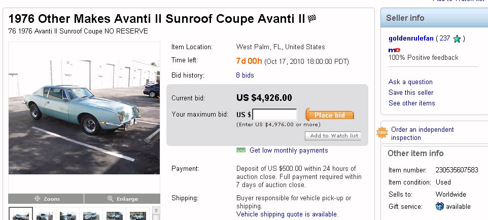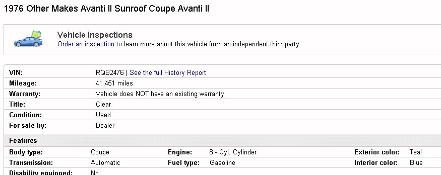 Bob's Studebaker Resource Website 1976 Avanti II RQB-2476 October 2010