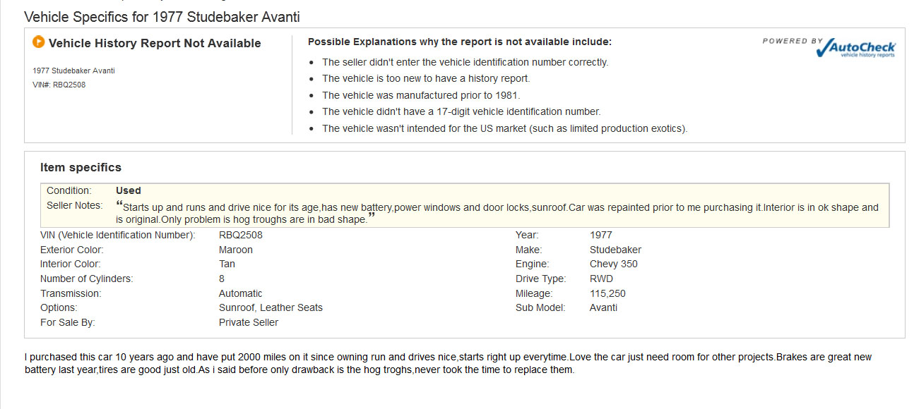 Bob's Studebaker Resource Website 1977 RQB-2508 Nov 2015