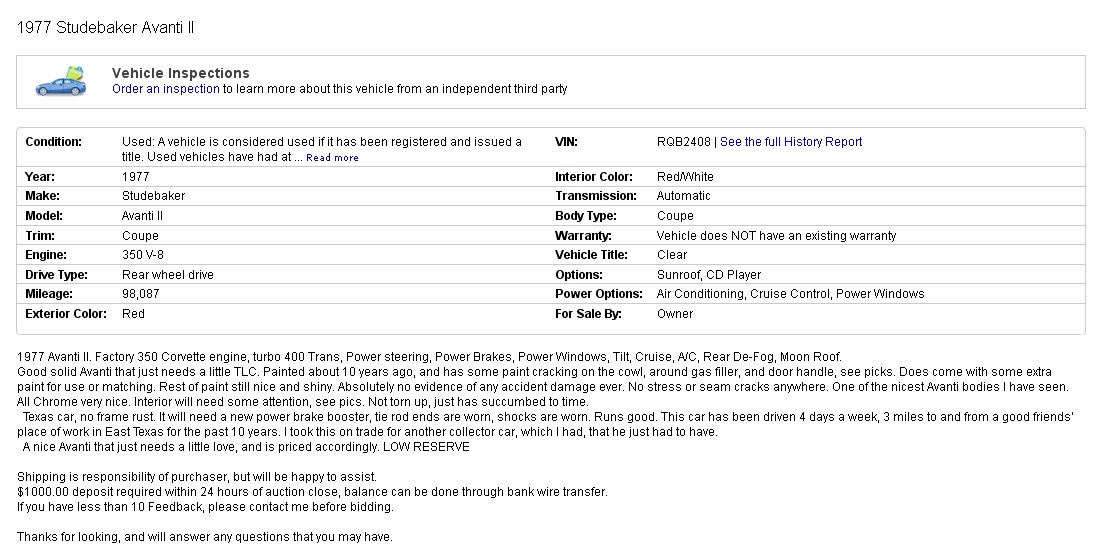 Bob's Studebaker Resource Website 1977 Avanti II - RQB2408 June 2012