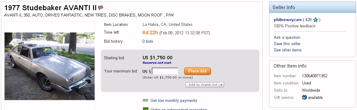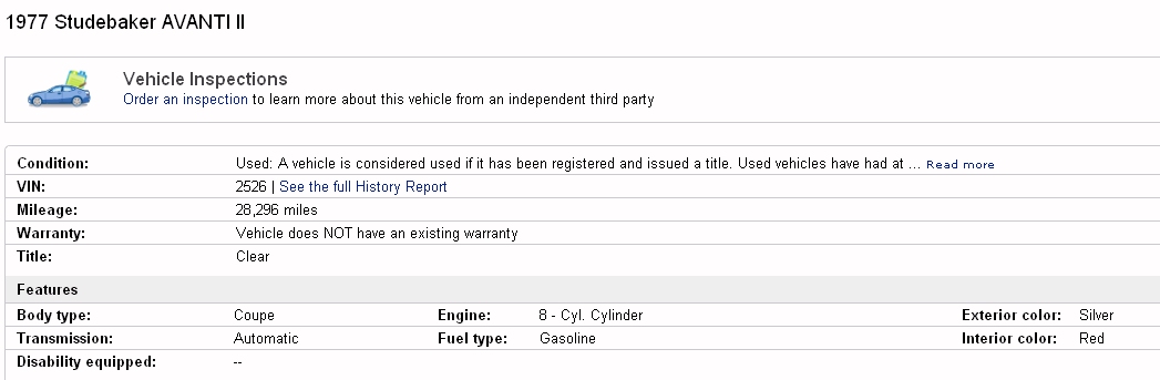 Bob's Studebaker Resource Website 1977 Avanti II - RQB2526