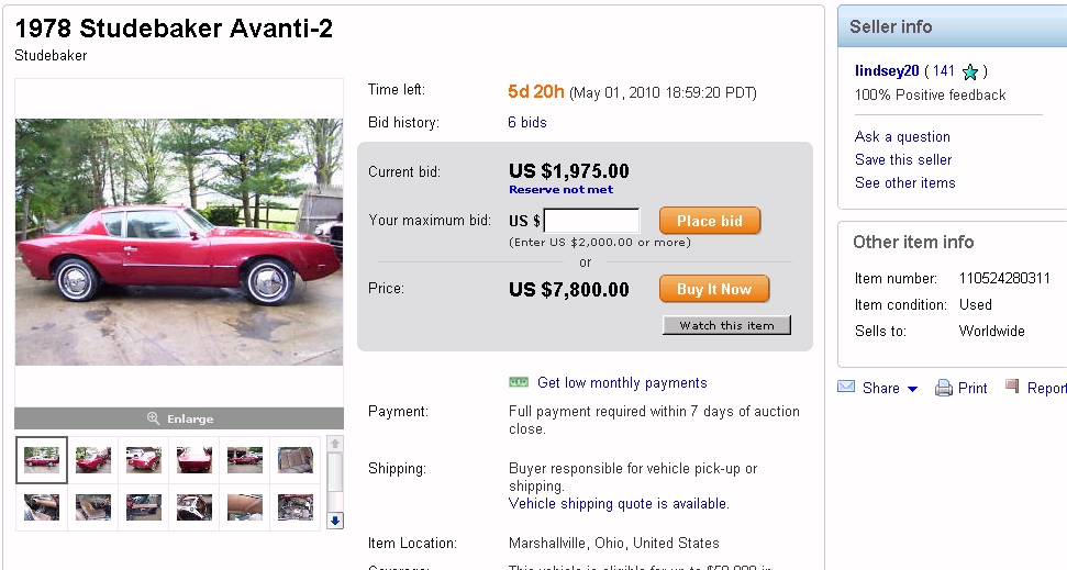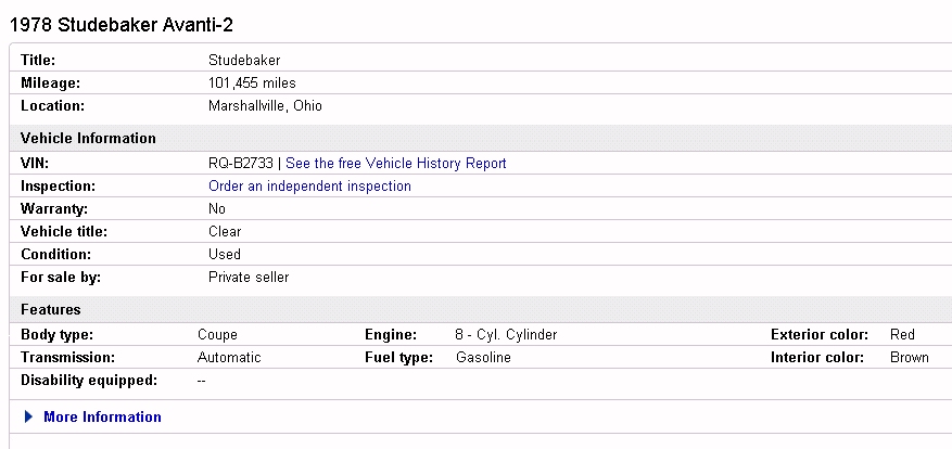 Bob's Studebaker Resource Website 1978 Avanti RQB-2733 Listing - April 2010