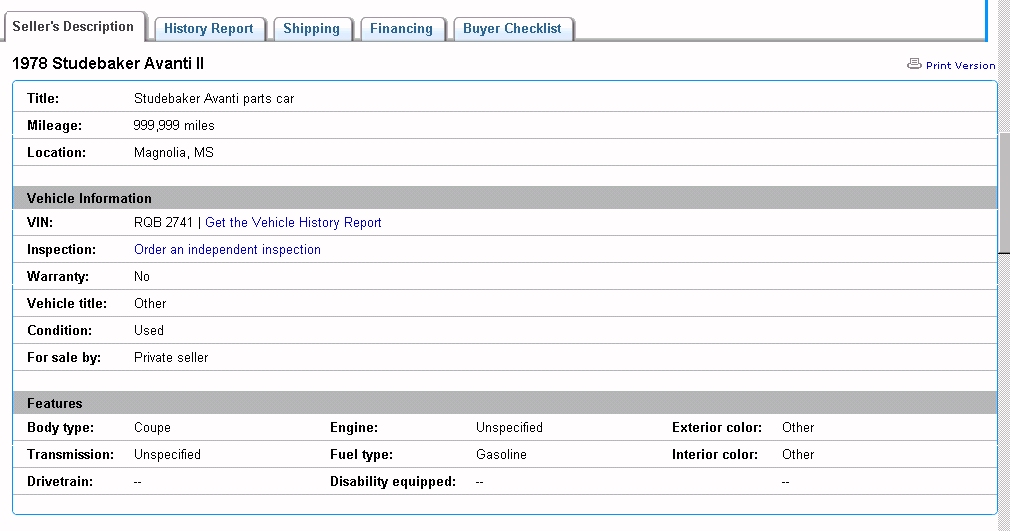 Bob's Studebaker Resource Website 1978 Avanti II RQB-2741