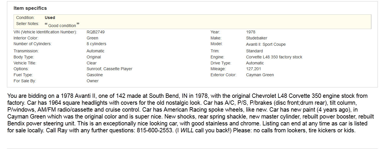 Bob's Studebaker Resource Website 1978 RQB-2749 July 2014