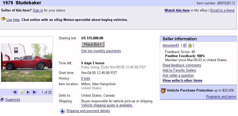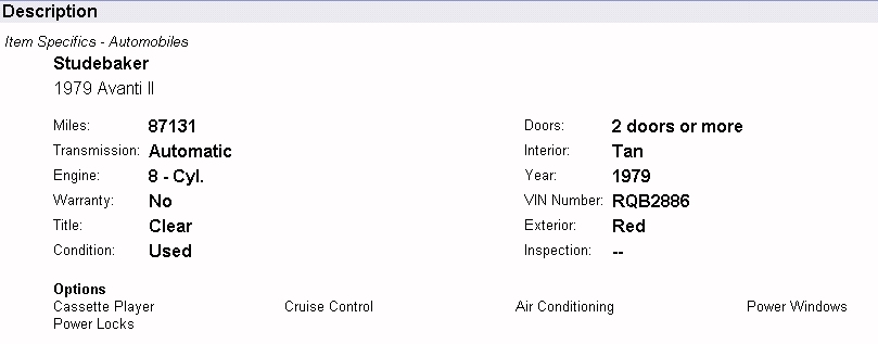 Bob's Studebaker Resource Website 1979 Avanti II RQB-2886 Sale Listing