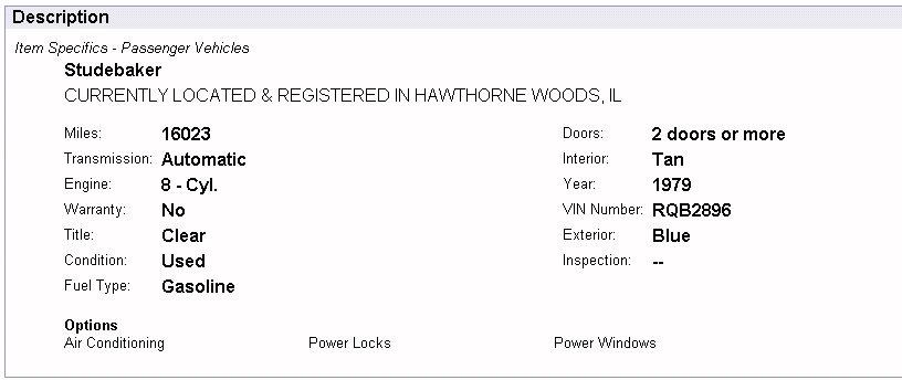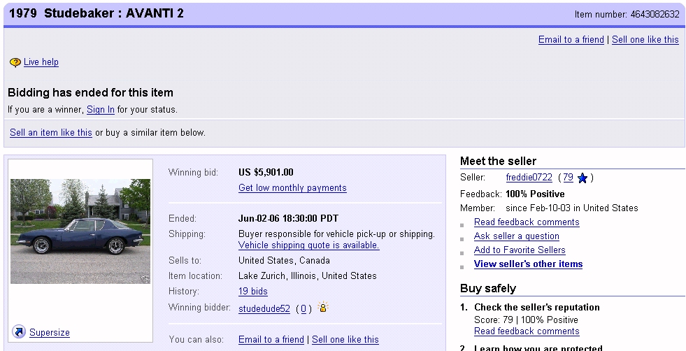 Bob's Studebaker Resource Website 1979 Avanti II RQB-2896 Sale Listing