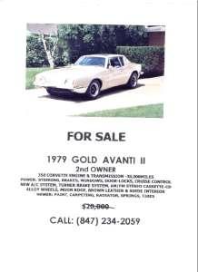 Bob's Studebaker Resource Website 1979 Avanti II RQB-2949 Dealer Listing