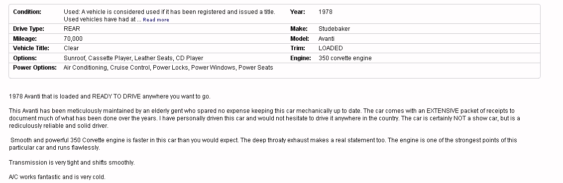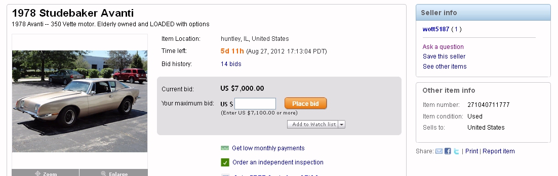 Bob's Studebaker Resource Website 1979 Avanti II RQB-2949 Ebay - August 2012