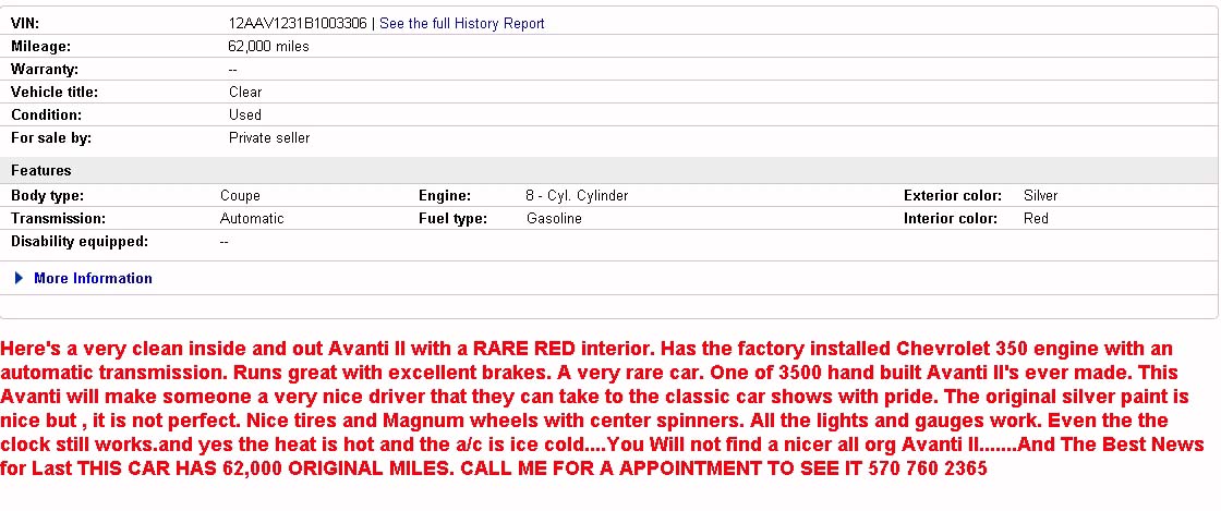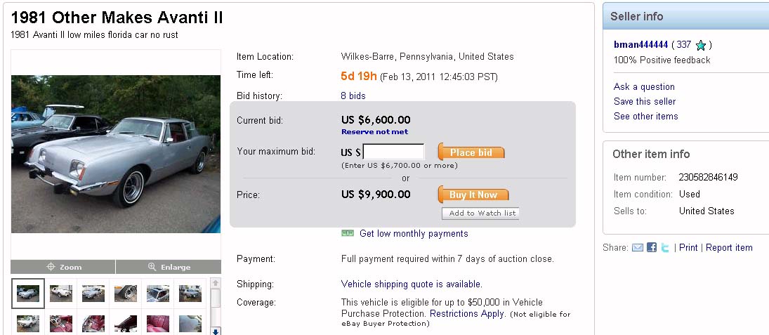 Bob's Studebaker Resource Website 1981 Avanti RQB-3306 - Feb 2011