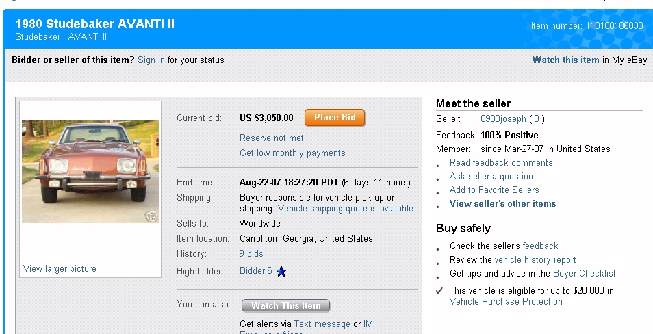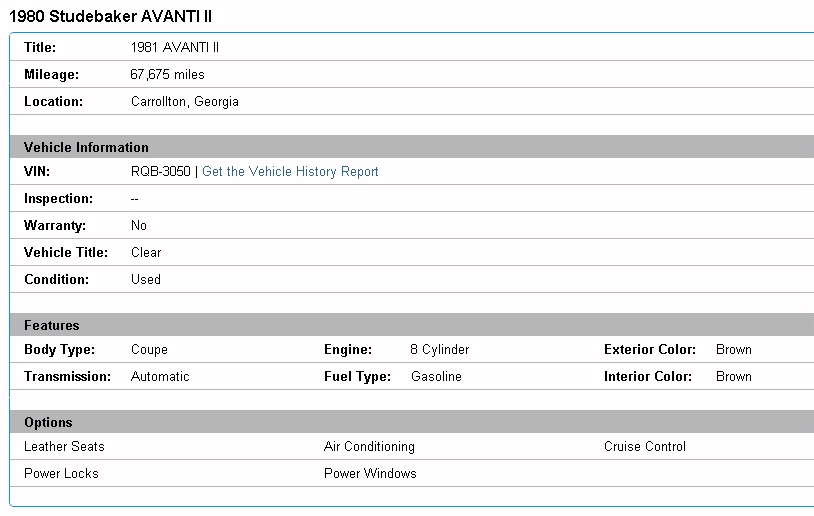 Bob's Studebaker Resource Website 1981 Avanti RQB-3050 - Aug 2007