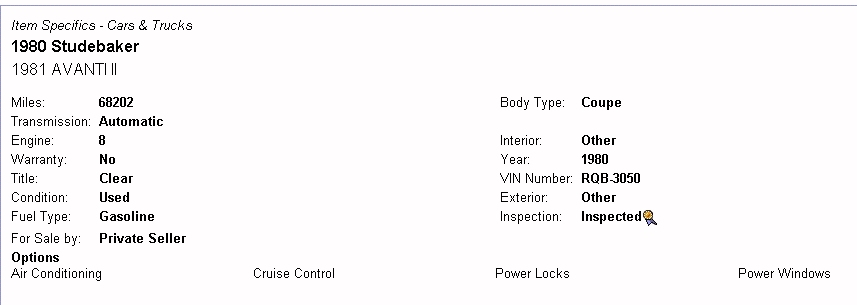 Bob's Studebaker Resource Website 1981 Avanti RQB-3050 - Nov 2007
