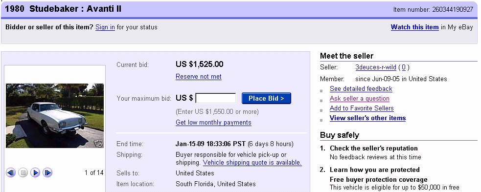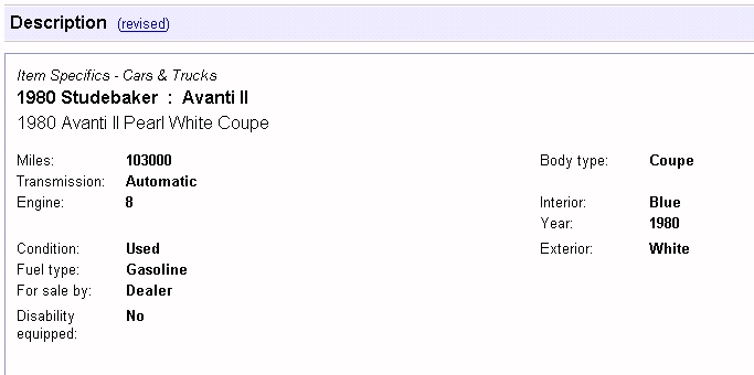 Bob's Studebaker Resource Website 1981 Avanti II RQB-3260 Listing