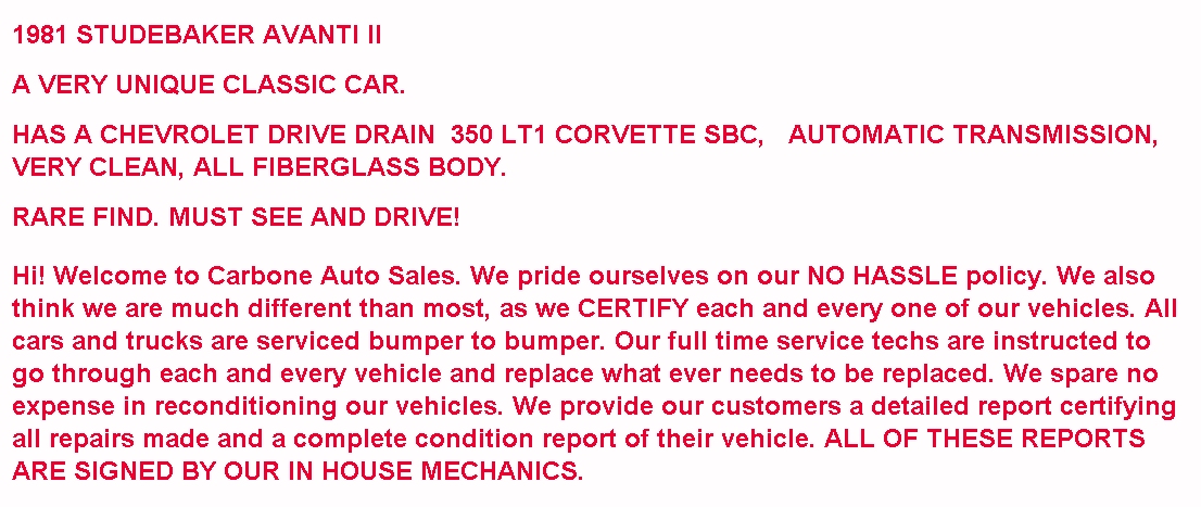 Bob's Studebaker Resource Website 1981 Avanti RQB-3260 - Apr 2011