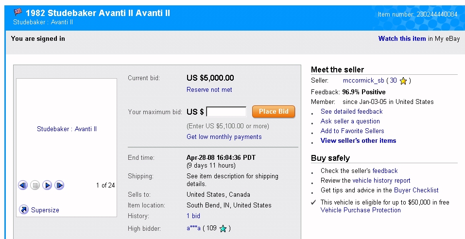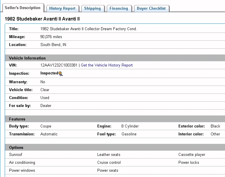 Bob's Studebaker Resource Website 1981 Avanti II RQB-3381 (April 2008)