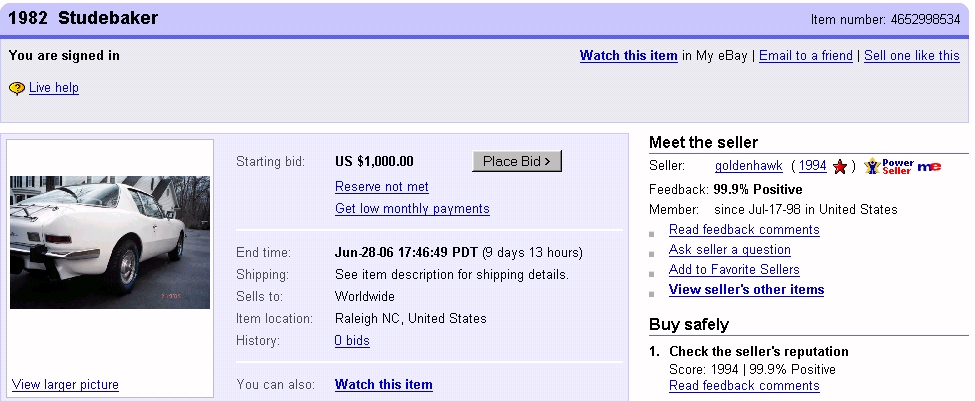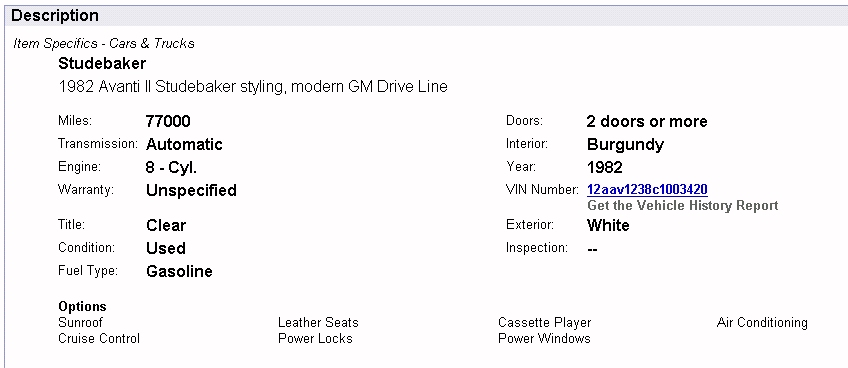 Bob's Studebaker Resource Website 1981 Avanti II RQB-3420June 2006