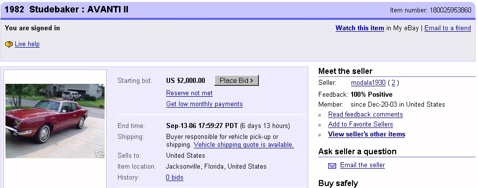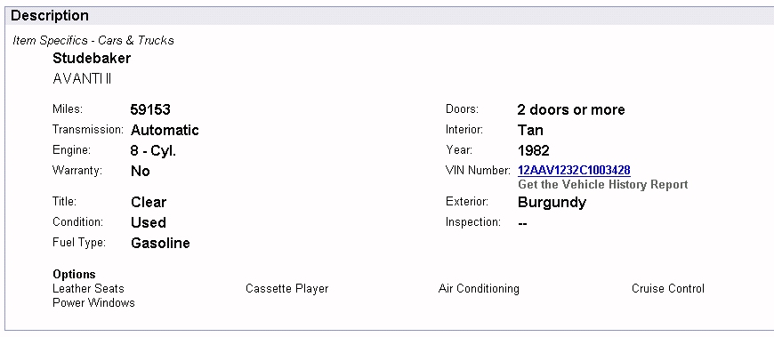 Bob's Studebaker Resource Website 1982 Avanti II RQB-3428 September 2006