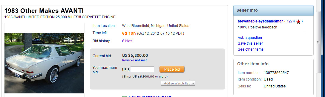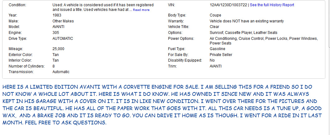 Bob's Studebaker Resource Website 1983 Avanti II RQB-3722 Oct 2012