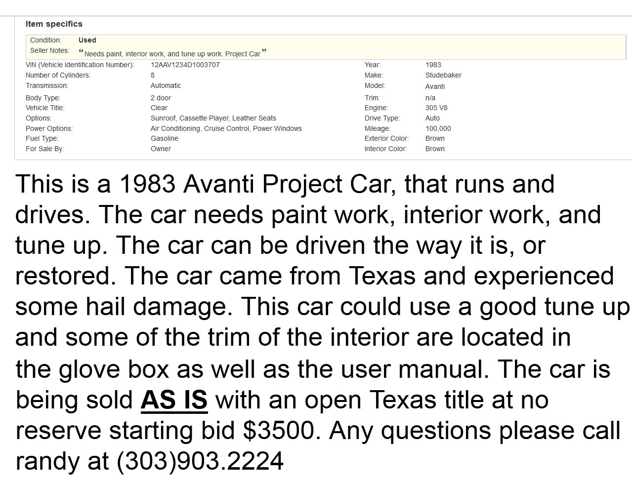 Bob's Studebaker Resource Website 1983 RQB-3707 July 2014