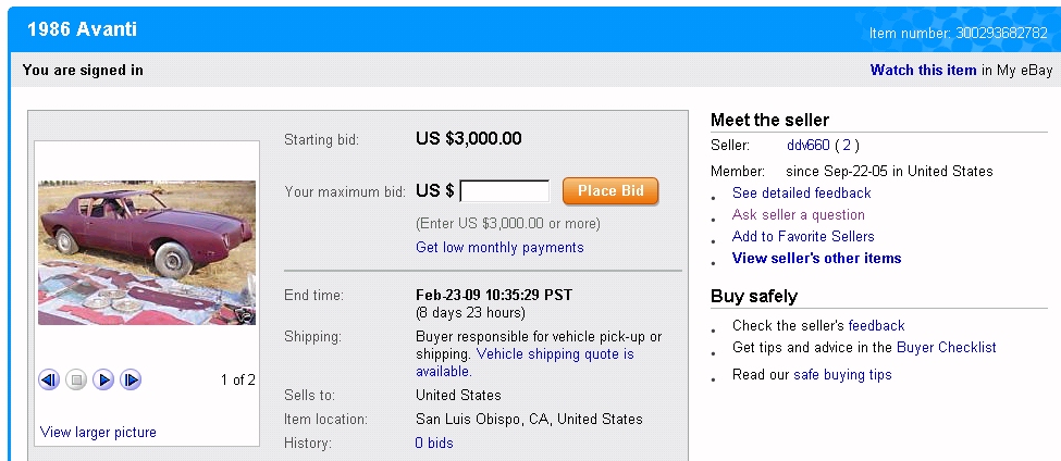 Bob's Studebaker Resource Website 1983 Avanti II - RQB-3736 NOT an 86!!